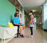 写真は、1年生の様子です。 担任の先生から通知表が渡されました。子どもたちは、も...