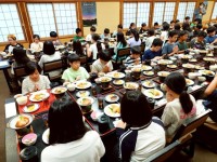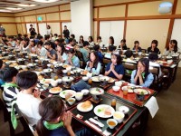 子どもたちは、ホテルの食事に大満足です。写真は、東観荘の様子です。