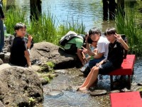 子どもたちは涼を求めて、暑さを凌ぎながら上手に楽しんでいます!