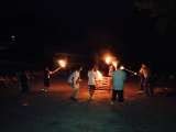ファイヤー係を中心に準備してきました。はじめの言葉の後トーチに火をつけて薪に点火...