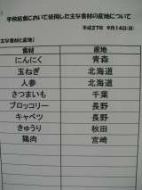 9月28日(月) 給食食材産地 今日の給食「むぎごはん・肉じゃが・野菜のごまあ...
