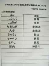 9月10日(木) 給食食材産地 今日の給食「ソース焼きそば・野菜の中華風味・寒...