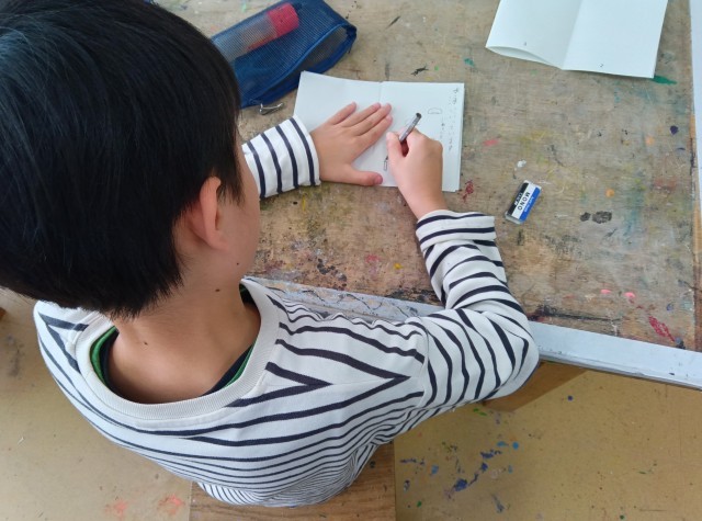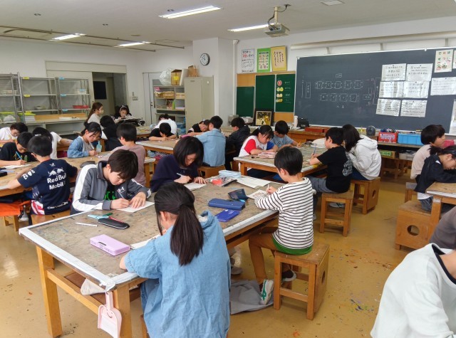 5年生が図工で8コママンガで「自己紹介」をかいています。好きな食べ物や趣味、楽しみなことなどをコマにかいていきました。色も塗って、丁寧に仕上げる姿に感心しましたが、全員が集中して取り組む姿に驚きました。