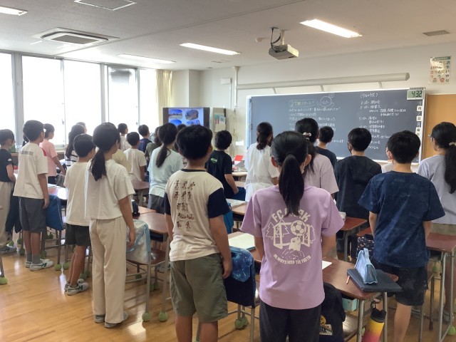 いよいよ2学期のスタートです。校長先生からは、チャレンジすることについてのお話がありました。2学期は、様々なことに挑戦して自分の成長に繋げてほしいと思います。「しっぱいはたから」です。どの子も失敗を恐れずに頑張ってほしいです。最後に校歌を歌って始業式を終えました。