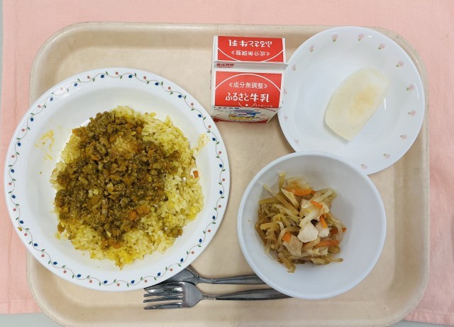 「今日の給食はドライカレーだよ!」と