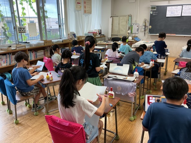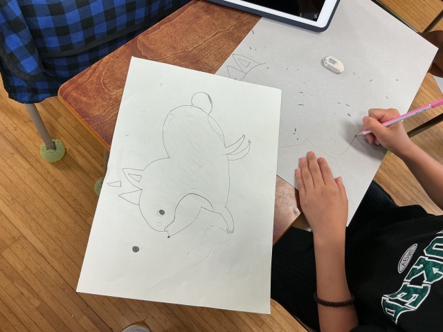 工作用紙に本体や鱗、目などのでこぼこさせたいパーツをひとつずつ描いていきました。