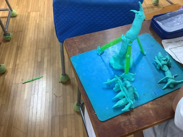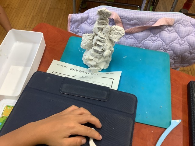 手を使って 思い思いに造形を楽しみました。個性的な作品がたくさん出来上がりました。