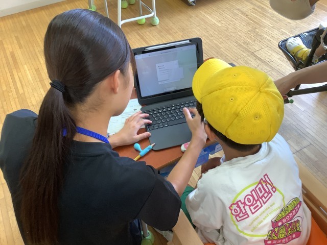 今週はきはだ学級に大学生が実習に来ています。きはだ学級のみんなのサポートをお手伝いしています。