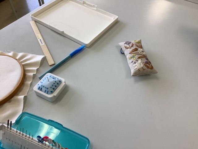 5年生は、刺繍の授業がありました。ゲストティーチャーのマカベ・アリスさんをお呼びして、刺繍に挑戦しました。絵を描くように刺繍糸で表現できることを学びました。