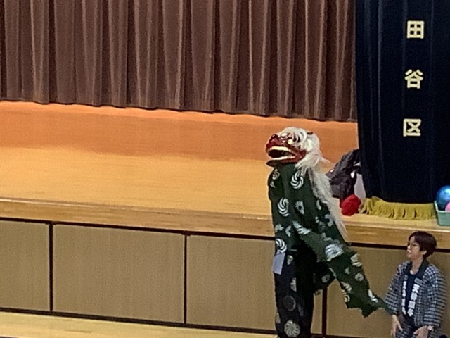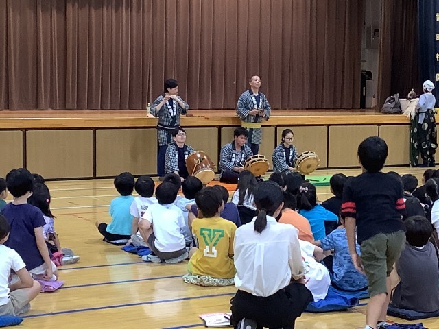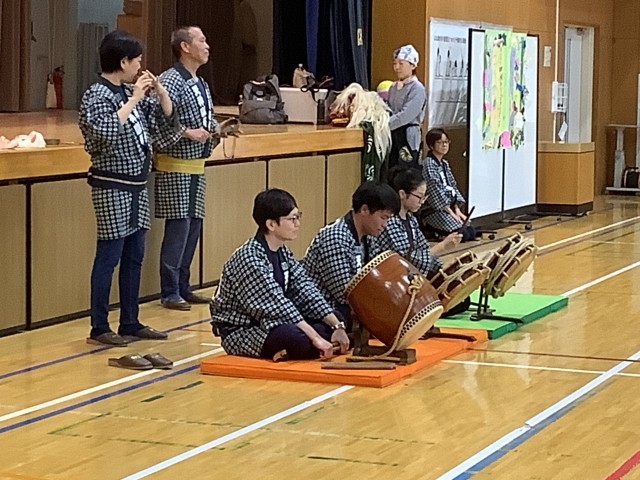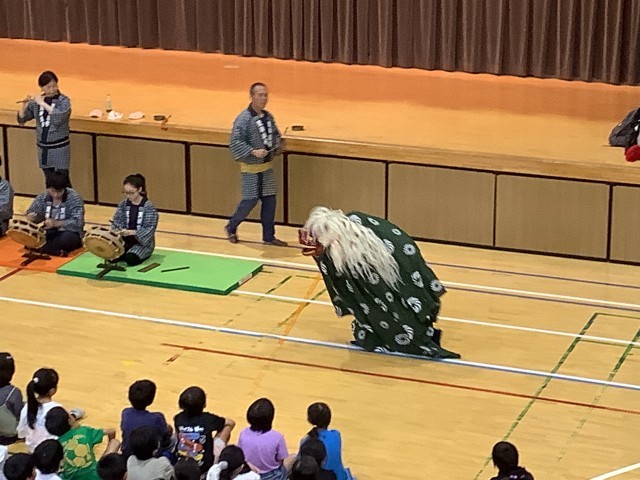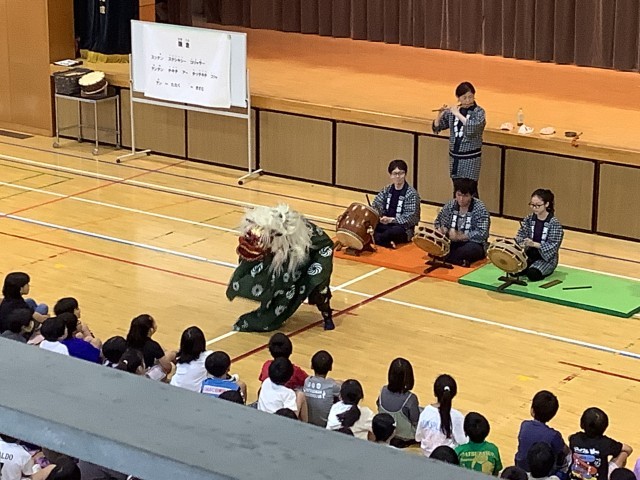 3年生は、お囃子体験教室がありました。地域の伝統芸能であるお囃子は、神社のお祭りの日に見ることができます。子供たちは、獅子舞の生き生きとした動きに驚いていました。