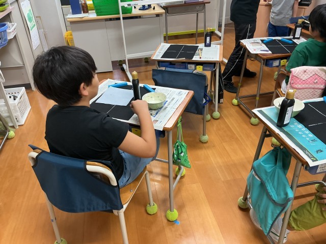10/6 みずしゅうじ くすのき学級 公開日 2025/10/06 更新日 2025/10/06 できごと 水で色が変わる水書紙を使って筆の使い方を学習しました。筆先を使って「はらい」の書き方を練習しました。 いいね(0)