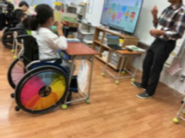 中学年の外国語の授業がありました。初めてのチャンツにも大きな声で取り組みました。