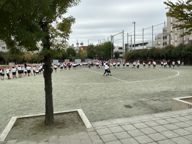 4年生の表現は、テンポの速い曲でノリノリで踊ります。隊形移動も練習中です。