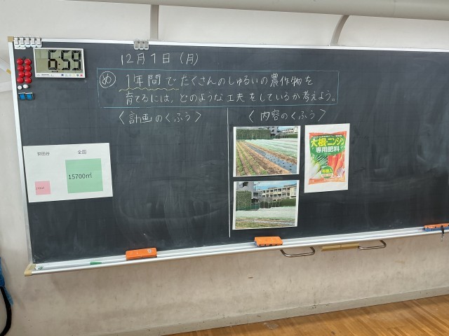 12/1 農作物を育てる工夫 3年生 公開日 2025/12/01 更新日 2025/12/01 できごと 3年生は、農家見学を経て、農家の人たちがどのような工夫をして作物を育てているのか考えました。グループで資料を見ながら話し合って考えます。 いいね(0)