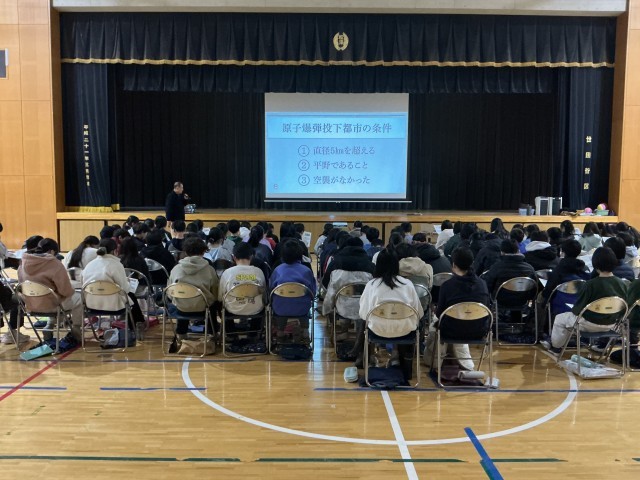 1/22 原爆先生 公開日 2026/01/22 更新日 2026/01/22 できごと 原子爆弾の威力や怖さについてゲストティーチャーを招いて話を聞きました。これまで学習した内容がさらに深まったようです。 いいね(0)
