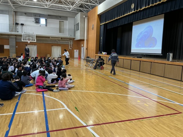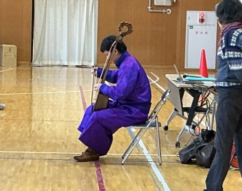 2年生は、国語で「スーホの白い馬」というお話を学習します。今日は「スーホの白い馬」の読み聞かせの後に、モンゴルの馬頭琴の先生に、馬頭琴を演奏していただきました。馬頭琴の音色が体育館に響き渡りました。
