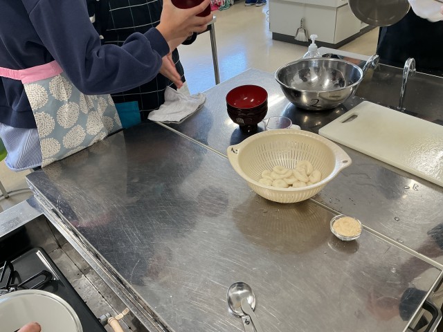 6年背は、調理実習がありました。日本の伝統的な甘味、「おしるこ」を作りました。もちもちした白玉が美味しそうです。