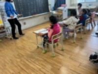ミシンの学習がありました。足でペダルを操作して、まっすぐ縫えるように頑張ります。