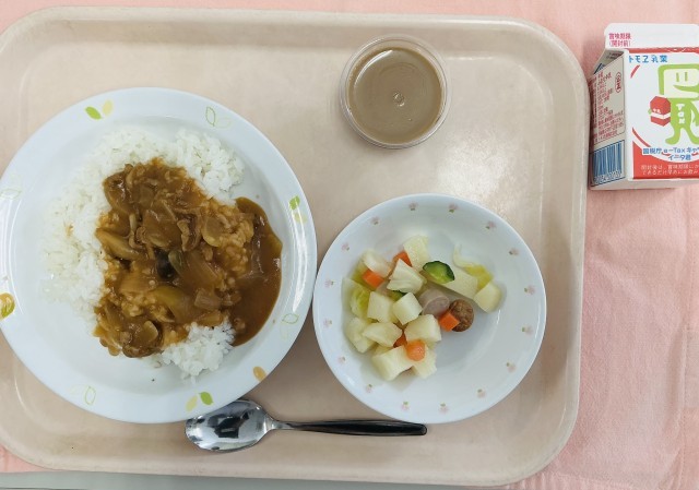 食缶も開けて「今日もカレー!?」という声もあったように、