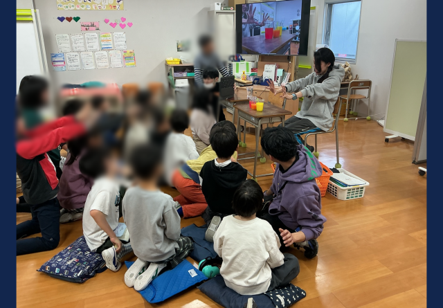 みんなで「サイフォンの原理」の実験をしました。コップに触れずに水が移動したり、水が混ざって色が変わったりする様子に興味津々で、とても盛り上がりました。