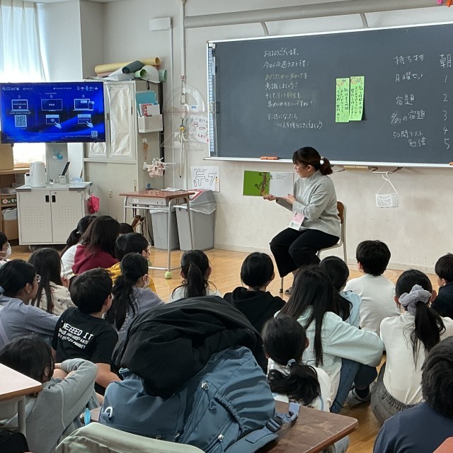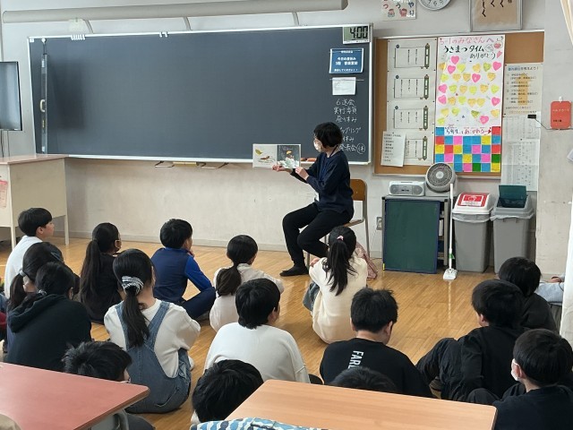 今日の朝の時間は読み聞かせボランティアの方がきてくれました。1年生と5年生は今年度最後の読み聞かせです。毎回読み聞かせを楽しみにしていました。最後も楽しい時間を過ごせました。
