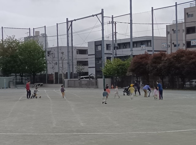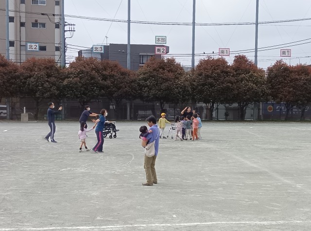 きはだ学級の子どもたちが元気に校庭で走っていました。鬼ごっこをして楽しそうです。大きな歓声がたくさん聞こえました。