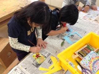 それぞれ落ち葉を持ち寄ってかわいいしおりを