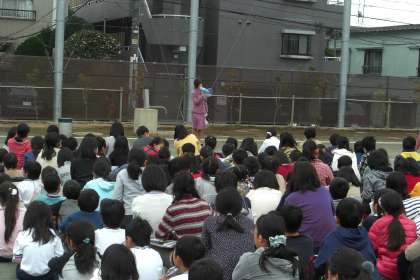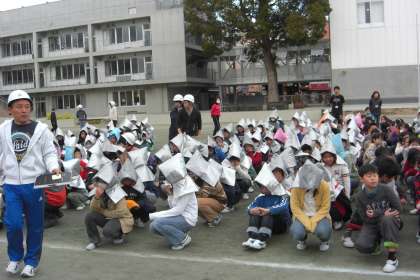 子どもたちは落ち着いて放送を聞き、避難しました。