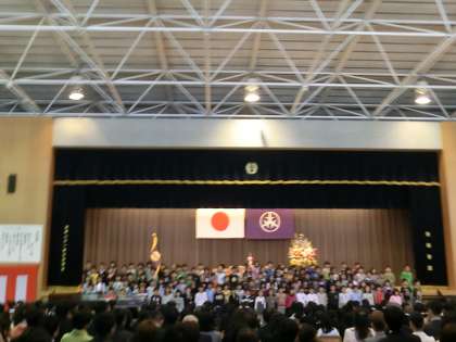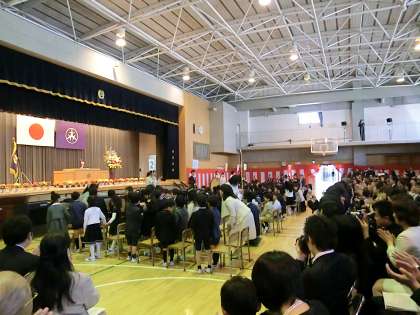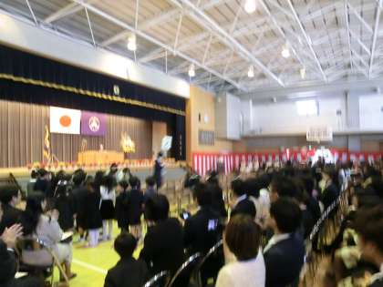 ピカピカの1年生、ドキドキしながら体育館に入場です。