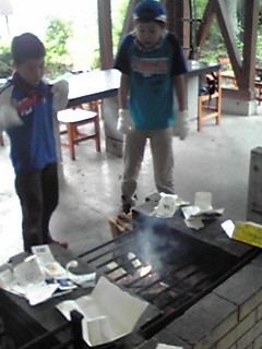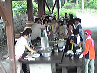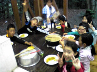 いよいよカレーライス作りです。煙りと玉ねぎが目にしみる〜
