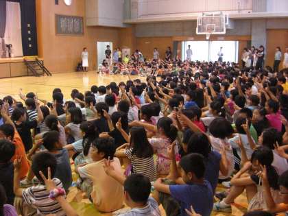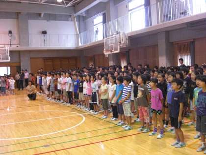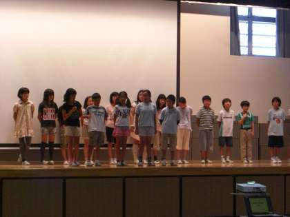 音楽朝会を行いました。今月の歌は「赤い屋根の家」です。