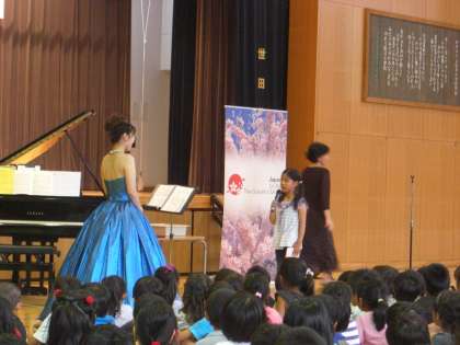 平井りえさんは、松沢小学校の校歌を作曲していただいた