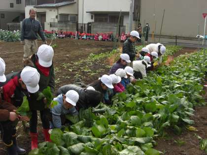 と、自分たちで工夫して小松菜採りを行うことができました。