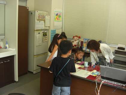 職員室や図工室、放送室に行き、どのような人がいるのか、