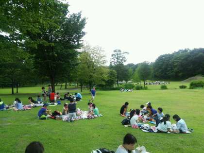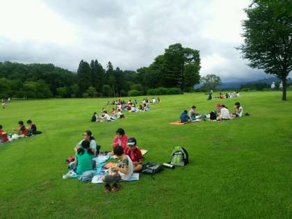 だいや公園につきました。予定より早く到着しました。お弁当を食べて、原っぱで遊びました。