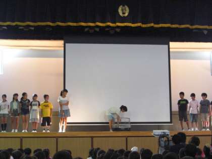 スクリーンを使って、餌のあげ方、掃除の仕方などの説明をしました。