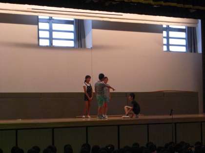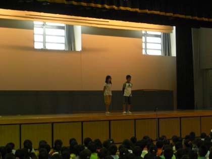 計画・代表委員が廊下の歩き方を劇にして呼びかけを行いました。