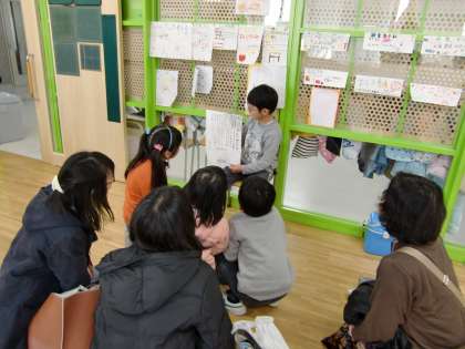 初めてのポスターセッション、3クラス合同の発表会、子どもたちは緊張した様子を見せていましたが、しだいに緊張がほぐれ、大きな声で堂々と発表できるようになりました。