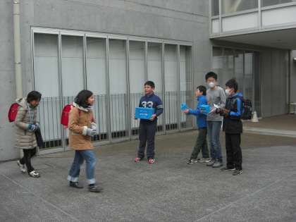 計画・代表委員の子どもが交代で門に立ち、大きな声で