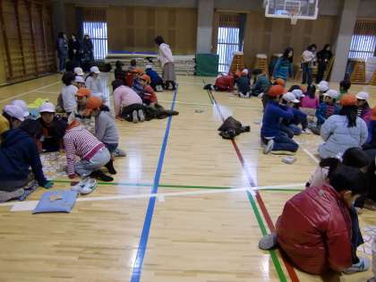 チームは3・4年生合同です。初めての合同授業なので緊張している様子も見えましたが、しだいに仲良くなっていました。