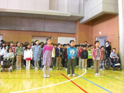 月曜日の朝会で、1、3、5年生による発表がありました。
