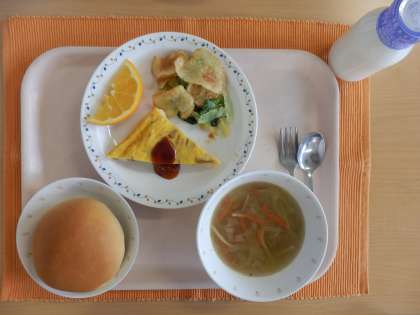 ・チーズ入りオムレツ または さけのムニエル トマトソース