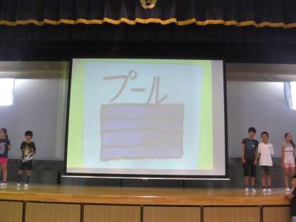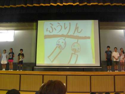 児童集会がありました。今回は夏の言葉を使ってビンゴゲームを行いました。