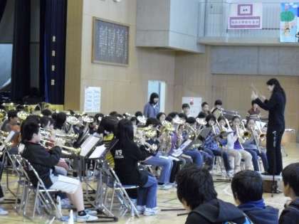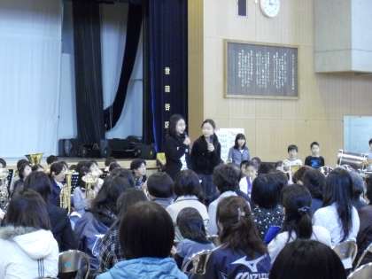 体育館で合唱団と金管サークルのさよならコンサートが開かれました。