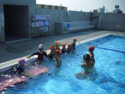 写真は、「水泳教室」と「五平もち」の一場面です。