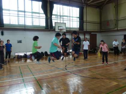 8月24日(月)は池之上小学校にて、近隣の小学校の先生と一緒に体育実技研修を行いました。今回は「長縄跳び」の様々な跳び方を実際に体験して、指導に生かせるように学んできました。一度に4人が同時に入ったり、平行に跳んだりと少しの工夫で、いつもの長縄の世界が別世界に変わってしまいました。2学期にぜひ子どもたちにも味わわせていきたいです。