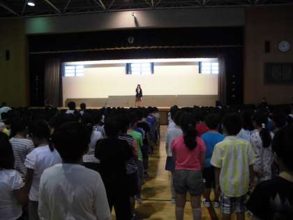 5年生の代表の児童が堂々と2学期の抱負を述べ,