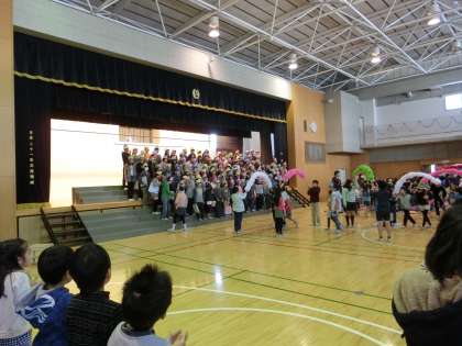 1〜5年生は、6年生へ感謝の気持ちを込め、出し物を披露しました。