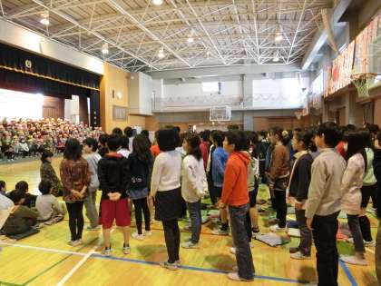 包まれた体育館に6年生が入場し、会が始まりました。