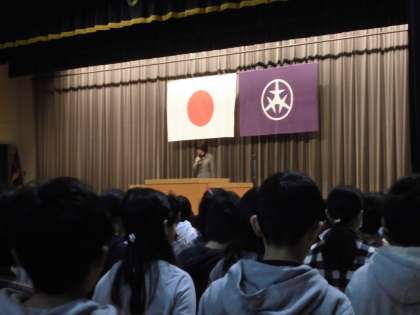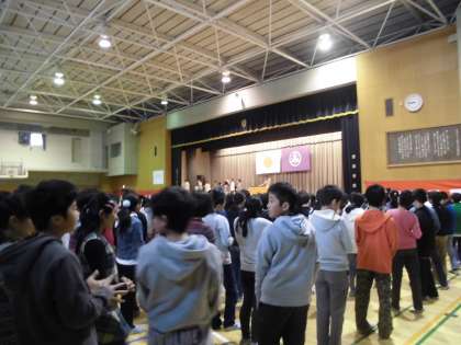 各学年の代表児童が一人ずつ舞台に出て、校長先生から
